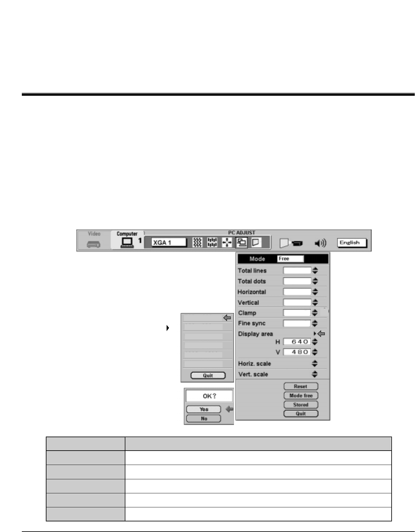 have stored the settings, "OK ?" is displayed for confirmation. Move the arrow to Yes and then press the SELECT
