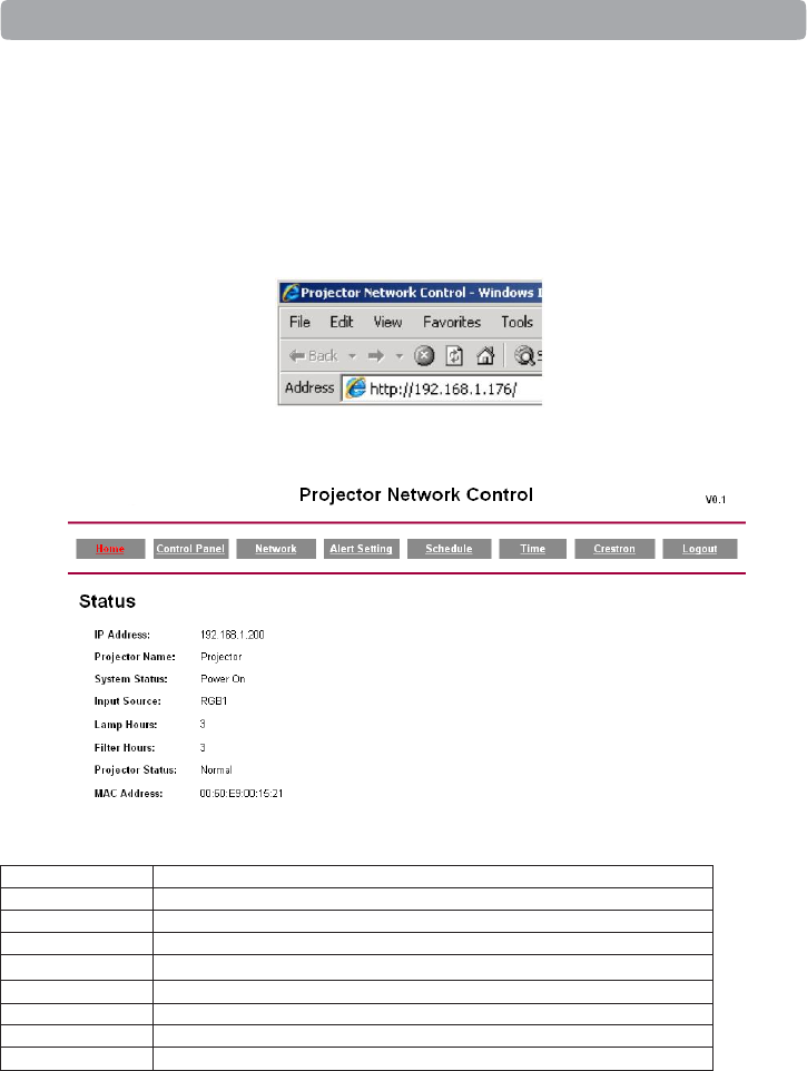 Show current projector status and network