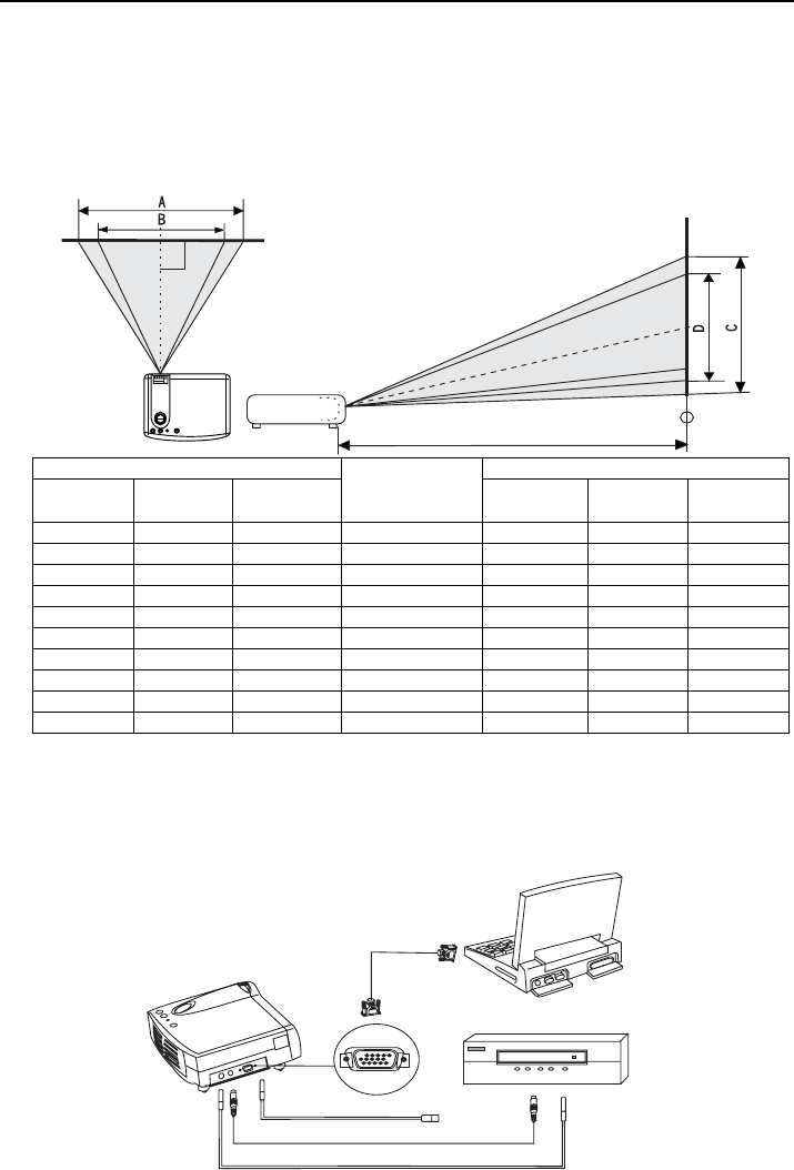 Place the projector at the required distance from the screen according to the desired